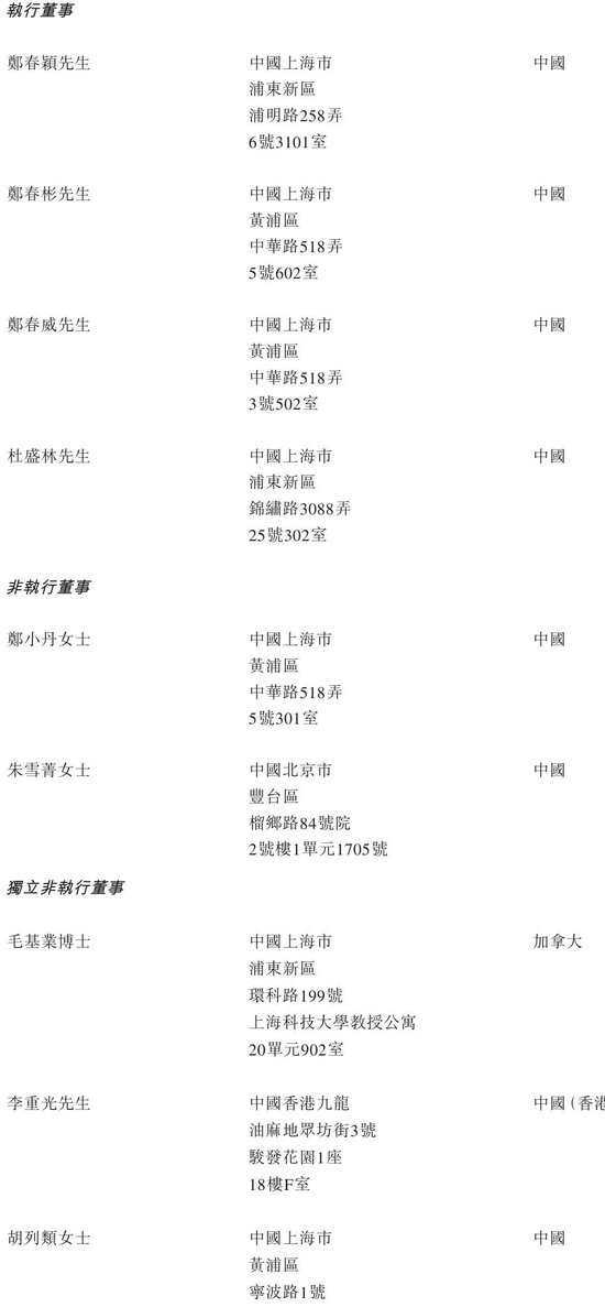 当然堂实施董事永别为郑春颖、郑春彬、郑春威、杜盛林,非实施董事永别为郑小丹女士、朱雪菁女士;寂寞非实施董事永别为毛基业博士、李重光、胡列类女士。