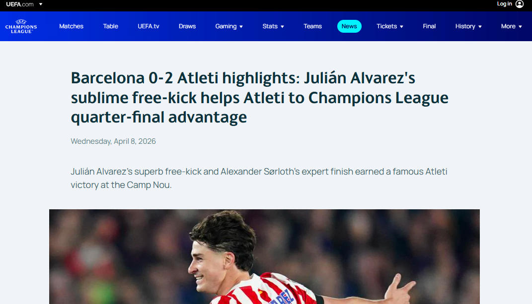 北京时刻4月9日凌晨,本赛季欧冠联赛1/4决赛首回合再战两场,法甲巴黎圣日耳曼队和西甲马德里竞技队以2比0的斟酌比分,诀别打败英超利物浦队和西甲巴塞罗那队。