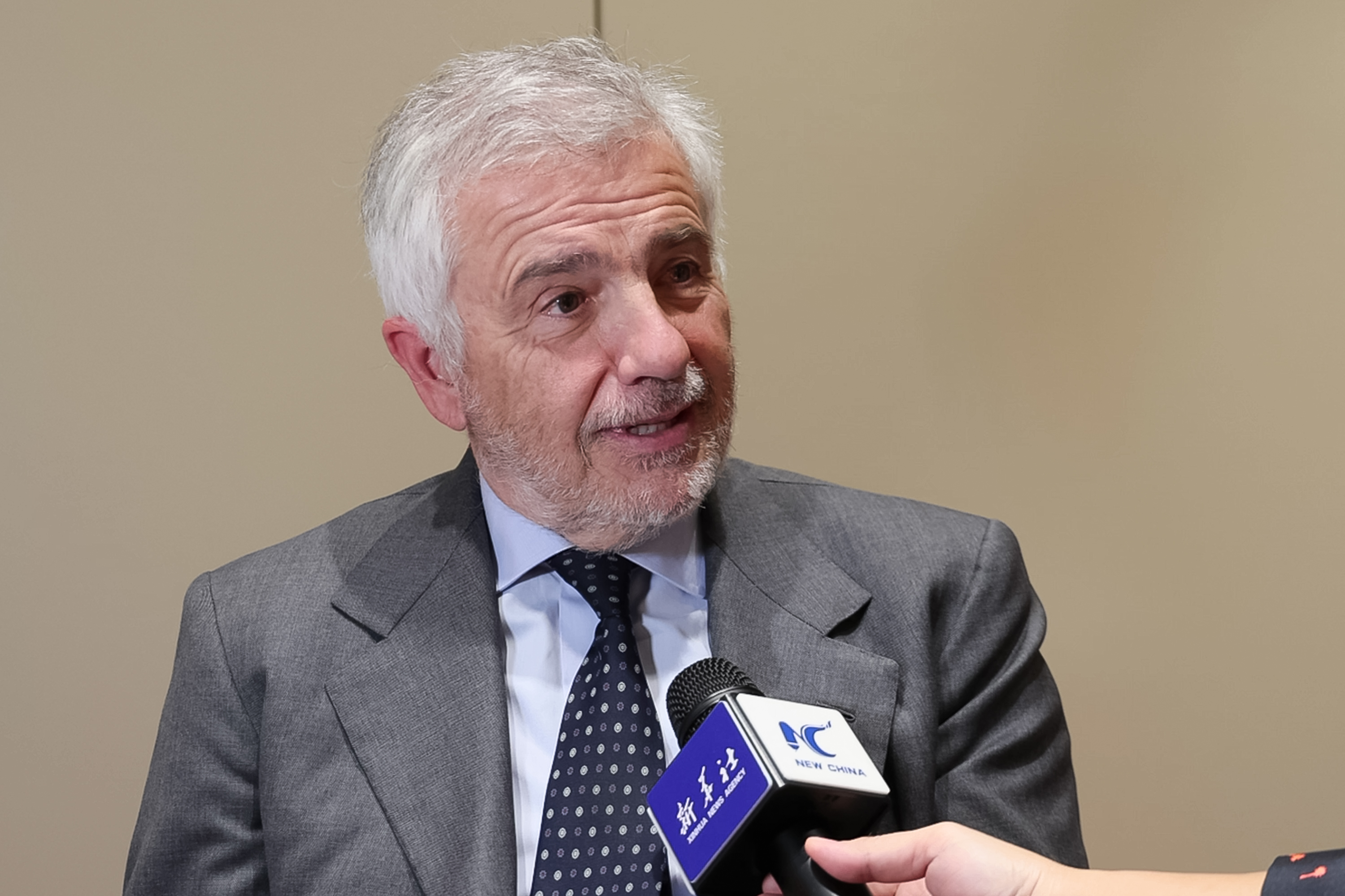 资料图:胡安·安东尼奥·萨马兰奇接受新华社记者采访