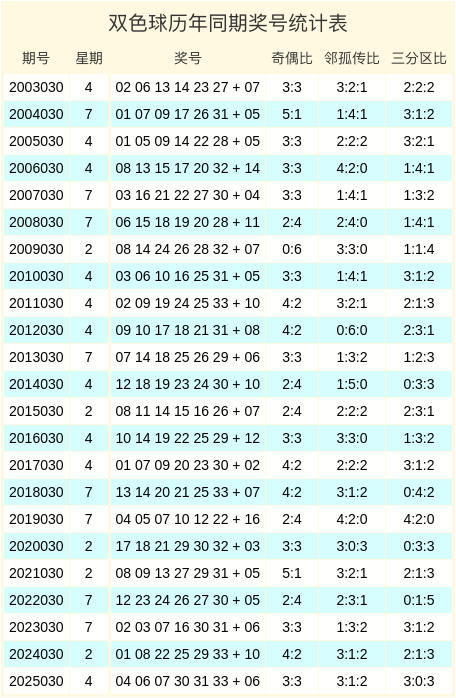 双色球积年同时奖号分析