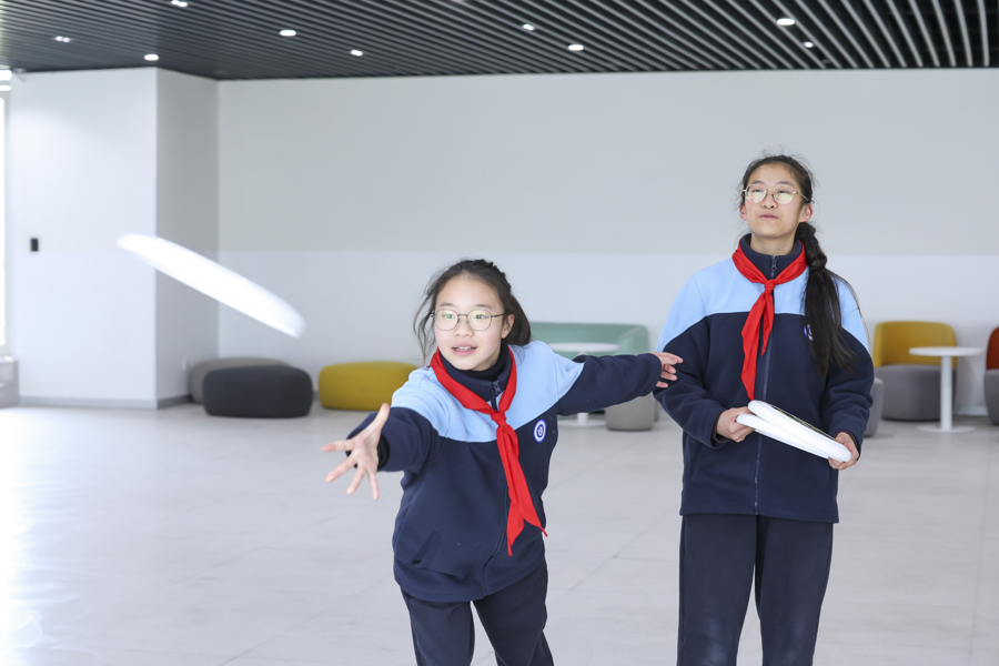 在6、7年龄初中部的专属走廊,记者看到,除了篮球、室内高尔夫、电子飞镖等动感形式,围棋、象棋等棋类动作也备受敬爱,对弈切磋的学生周围站满了不雅战的同学。“学生可爱什么,咱们就采购什么、诞生什么,不同庚龄喜好不同,咱们还会按期更换形式。”学校副校长谢天豪先容谈。