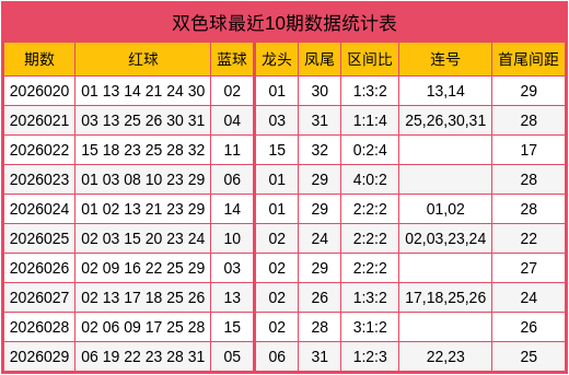 夏师父第2026030期双色球数据统计表
