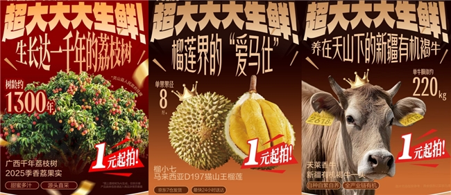 事实上,自2025年起,京东生鲜“超大生鲜”拍卖活动已集聚超500款新奇特生鲜好物,诱骗超30万东说念主参与。有数好玩的商品、新颖意思的玩法,让耗尽者既能“玩”又能“省”。客岁,千年荔枝古树全年采摘权以13101元拍出,折算每公斤仅约32元;源自马来西亚黄金产区的猫山王榴莲以551元成交,不到商场价8折;新疆有机和牛礼盒商场价6000多元,最终以1004元拍出,不到2折。很多耗尽者抱着好玩的心态而来,却偶而发现成交价远低于商场售价,收货了出东说念主预感的“捡漏”体验。