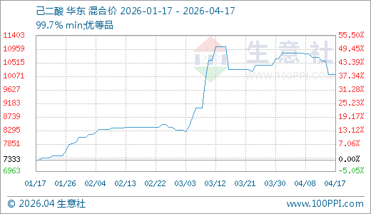 盈胜优配据贸易社监测,己二酸04月17日最新价钱10133.33元/吨,免息炒股配资最近60天高潮20.63%,90天高潮38.18%。